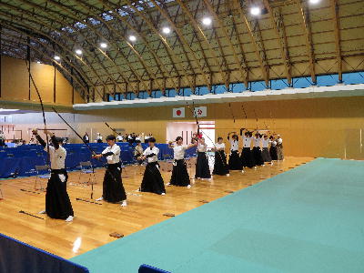 厳しい残暑が続く中、男子16郡市(114名)、女子15郡市(82名)の参加で「大分県民スポーツ大会(弓道競技)」を開催しました。